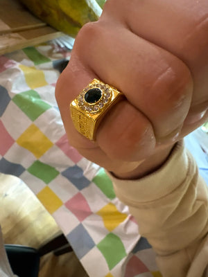 This stunning green stone ring adds a touch of sophistication to any outfit. Whether you're attending a party, wedding, or simply enjoying a day out, you'll feel confident and elegant with this timeless accessory.