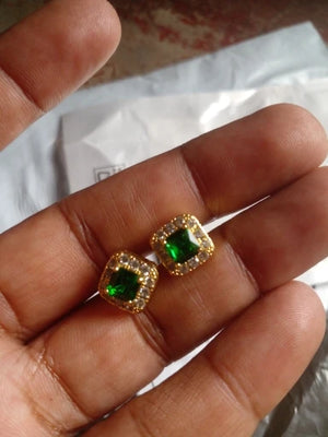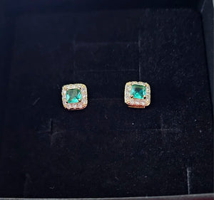 Brighten your look with these shimmering green cubic zirconia studs. Their vibrant hue adds a pop of color to any outfit, making you stand out effortlessly at parties or daily outings.